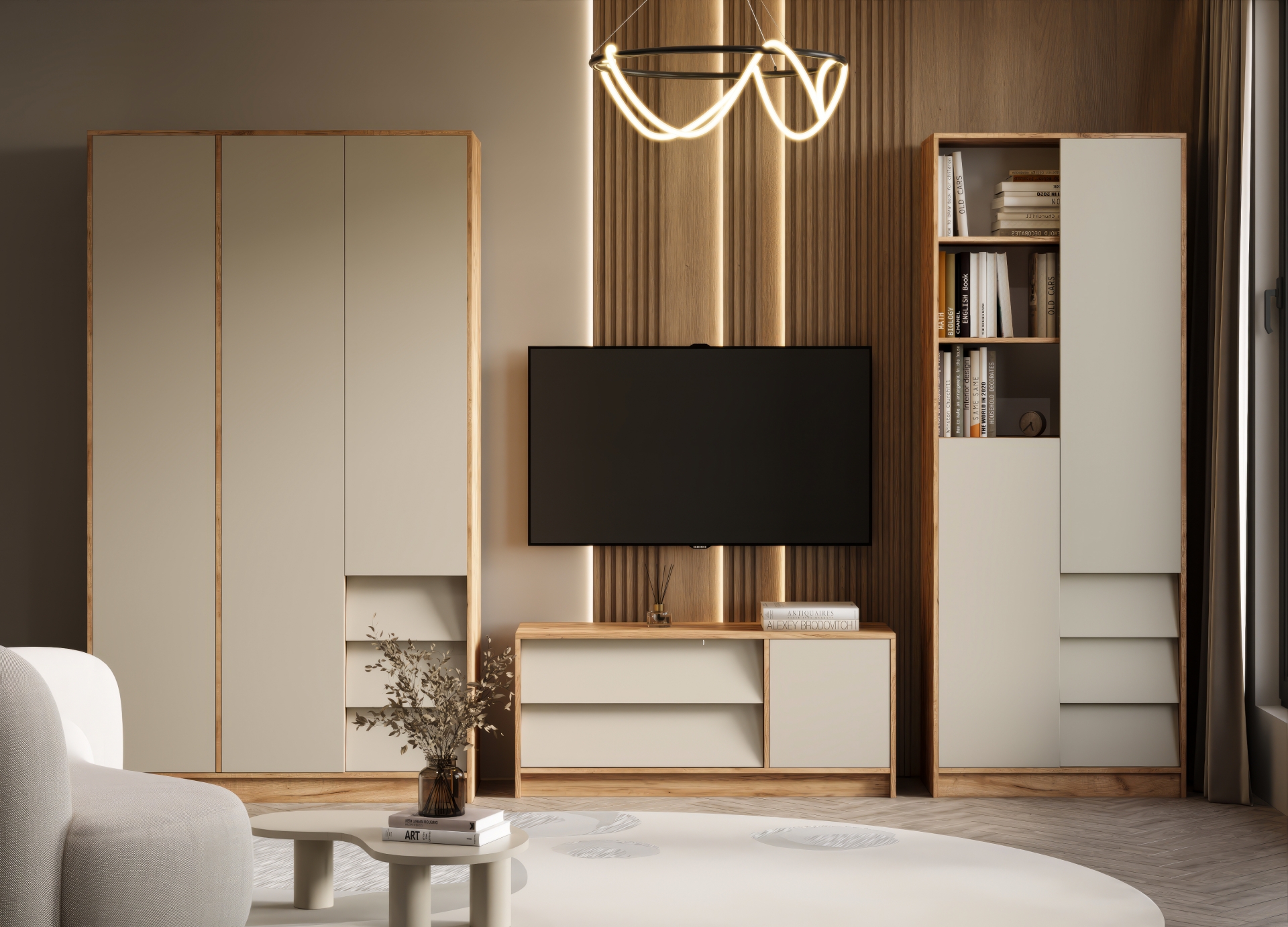 Гостиная Ева - современная модульная система для стильного и удобного интерьера. Наши шкафы предлагают максимальное наполнение и удобство сборки. Боковые части изделий делают интерьер эстетичным, а шариковые направляющие ящиков обеспечивают комфорт использования. Выбирайте из двух цветовых вариантов и создавайте пространство по своему вкусу.
