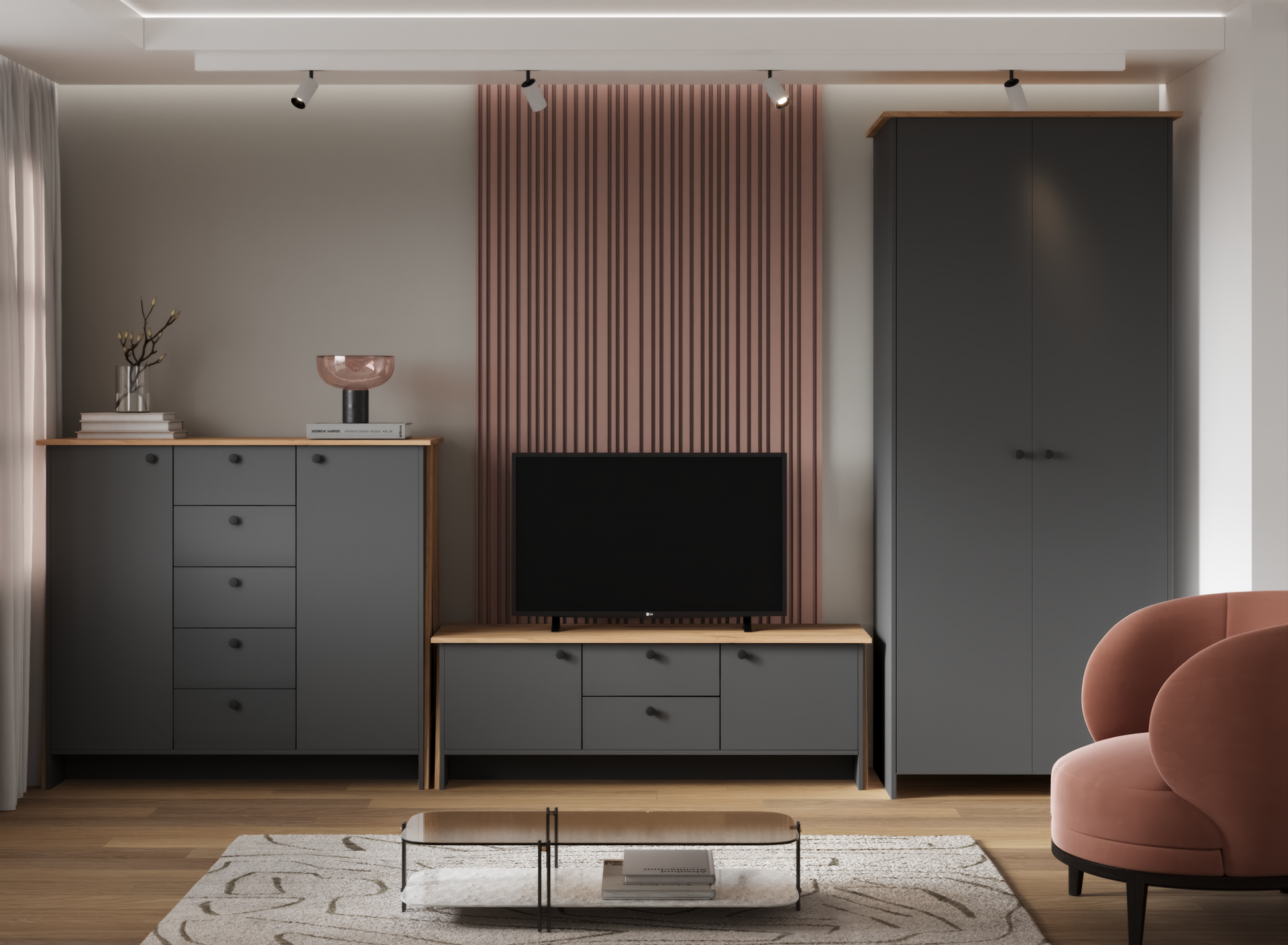 Гостиная Теодора ЛДСП графит/ ЛДСП крафт золотой